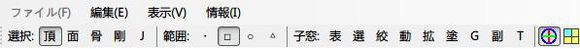 1、首先看看这个,左边的“选尺”是用来选择要编辑的物体类型(按顺序看就是:顶点,面,骨骼,刚体,链接体)