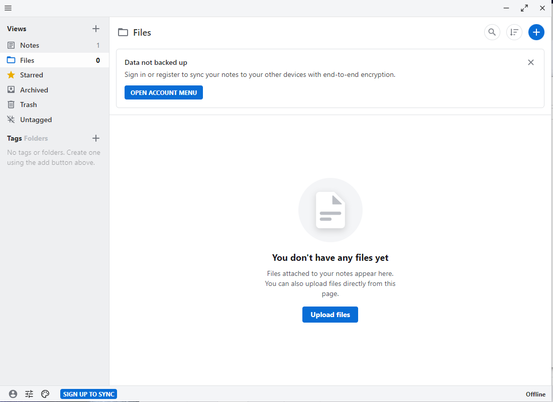 你的同步帐户允许你访问你的笔记,不管你在哪个设备上。创建同步帐户也会创建一个强大的加密密钥,从您的密码。在app的左下方的菜单中点击“account”设置一个账户。这也将自动启用端到端的加密,这意味着你的笔记在同步到你的在线账户之前,会在你的设备上使用你的秘密密钥加密。没有人能解密你的笔记:我们,不是你的ISP,也不是侵入性的政府。这种类型的安全性也意味着如果您忘记了密码,就无法重新设置密码。你可以在登录后改变它,但是你不能说“我忘记了”,否则你将无法访问你的数据。