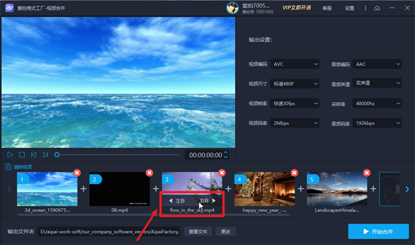 2、鼠标移动至每一个视频片段图内,点击【左移】或【右移】左右移动每一个视频片段,调整为合适的排列顺序。可以通过右上角的【X】对本片段进行删除。