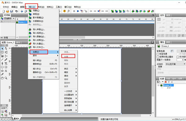 这个类别中主要包括放置(place)、 删除(remove)、 移动(move)三种特效 ,放置特效就是把对象放在影片的播放时间线上。 删除就是把对象从时间线上删