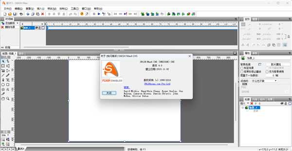 swishmax4中文版作为一款二维动画制作软件,主要就是帮助用户进行flash动画的制作,支持导入图像、声音、视频和文本等多种格式的文件,让你的动画创作可以获得事半功倍的效果。那么很显然大家就会跟flash相比,但是也可以说是各有各的优势,毕竟该软件拥有着诸多的实用功能,提供了近六种类型效果可供用户选择,包括关闭时的效果、从位置消失的效果、回到起始的效果、显示到位置的效果、核心效果以及连续循环的效果这六种效果,而每个效果所拥有的相应的特效都是不一样的。例如核心效果包括了爆炸、漩涡、变形以及挤压等,关闭时的效果的效果包括了电影-星际大战、疯狂-拍打以及疯狂-火焰跳跃等。其他的相关效果用户在编辑的过程中都能使用得到,用户自行进入探索吧。同时在动画制作的过程中,用户可以插入多样的元素借此来丰富动画的制作,而在这里用户可以插入诸如声音、视频、图像以及文本等。提供的100多种预设效果以及海量的素材来进行Flash动画的制作,让你可以省掉很多复杂操作,轻松制作出Flash动画。能在短时间内制作出复杂的文本、图像甚至声音,无需注册即可使用,还是简体中文界面,非常方便。