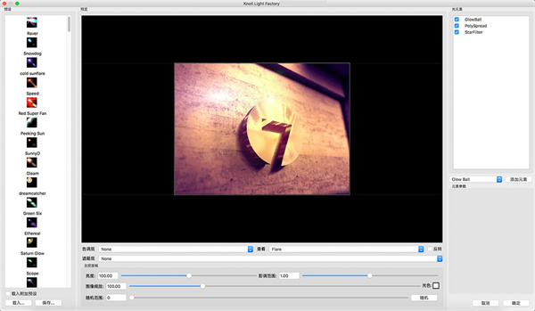 Knoll Light Factory提供直观的用户界面,包括应用预制照明弹的控件。自定义光斑编辑器可让您创建和编辑自己的自定义效果。插件通过组合拍摄灯光和明亮物体时出现的19种不同元素中的任何一种,可以非常轻松地构建自然镜头光晕。