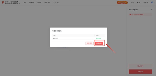 3、文件上传成功后,点击【开始转换】,静候数秒,即可完成。