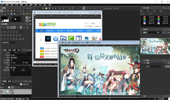 众所周知,Photoshop是目前市面上最著名、功能最专业出色的图像编辑软件。但是对于大多数入门用户而言操作起来确并不是那么的流畅方便。故此今日小编为大家带来这款由德国公司出品的一款具有专业水准的多功能通用图像和图形编辑器——PhotoLine,其一般又称迷你版Photoshop,不仅体积精简小巧、整体界面直观友好,涵盖了图层处理、滤镜插件、图层样式、网页动画制作、矢量作图、插入文字图层、以及丰富的滤镜和特效等多种功能于一体,可带给广大用户和Photoshop一样的使用体验。而更重要的是相比Photoshop软件来说,该软件操作简单更易上手,不但允许你编辑现成的图像并使用特殊效果、工具和滤镜绘制各种图片。也还可以编辑图像或针对web优化图像,使得旋转图像无任何损失,画面质量超清,让你轻轻松松就能做出令人惊讶的影像效果。