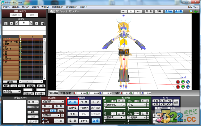 4、点击骨骼操作中的选择,即可进行模型相关动作的设置