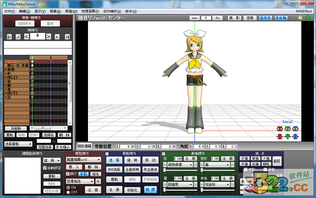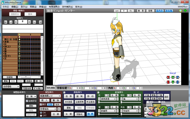 mikumikudance的功能很多样,用户在导入相关的模型之后,用户就可以在这里对模型进行相应的操作,包括骨骼的操作,也就是对其动作进行设置。表情操作,不用多说就是可以在这里设置它是笑还是哭等表情。而其他的例如帧等播放的设置就跟其他的动画制作软件一样。