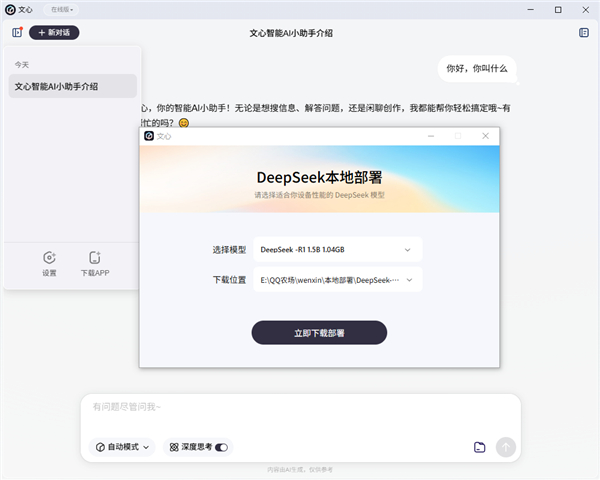 6、现在我们就完成了本地部署,已经为本地版安全隐私更高(如需要删除本地部署,前往下载文件夹将部署文件删除即可)!