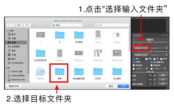 首先,将需要批处理的图片放入一个文件夹,接着点击“选择输入文件夹,在弹出的面板中选中刚刚的文件夹