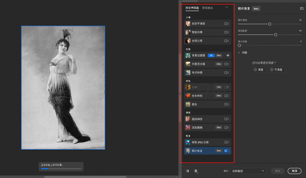 是否需要恢复旧照片?试用由人工智能提供支持的新型照片恢复 Neural Filter,可在 Photoshop 中修复您的旧家庭照片或恢复照片。