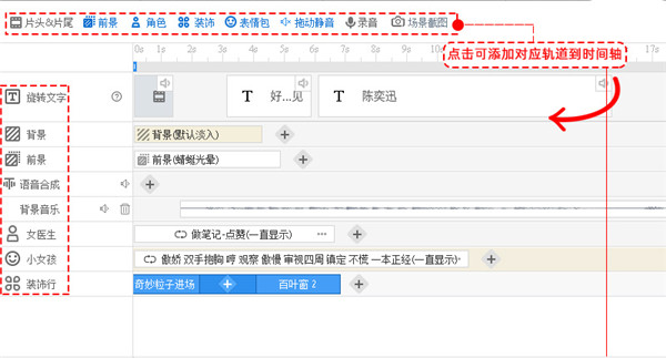 可以添加前景、角色、表情包、装饰;