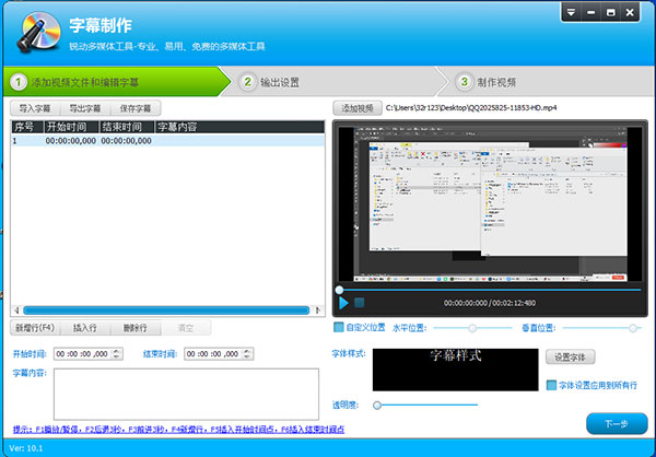 7、点击【自定义字幕位置】和【设置字体】,选择字幕的位置和大小,点击【下一步】