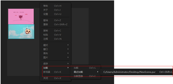 7、若想要打开可在加载设置中的最近加载中即可打开,也可使用Ctrl+Shift+L快捷键进行打开