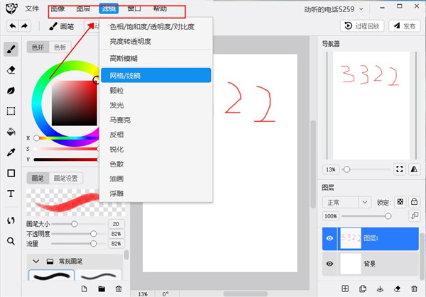 13、在熊猫绘画软件的菜单中还有一些功能可以使用,比如图层管理,滤镜,窗口管理等等。