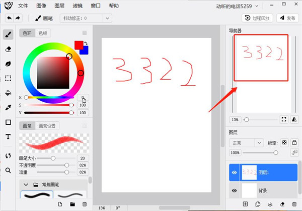 10、在熊猫绘画电脑版软件右上的位置是导航器,在您处理图像细节的时候导航器可以帮助您预览图像的整体效果。