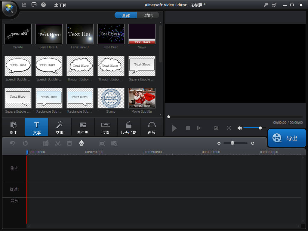 Aimersoft Video Editor中文版是一款实用的视频编辑与MV制作软件,软件可以把视频、图片、声音等素材编辑合成为新的视频,瞬间让你的照片,充满活力。而且Aimersoft Video Editor支持在在时间轴上做非线性编辑,添加字幕、音轨、转场/特效、画中画、片头片尾等效果,完全可用于制作专业品质的视频MV。而且Aimersoft Video Editor使用超级的简单,动动鼠标就能得到你想要的东西,不需要你懂视频制作的专业知识。
