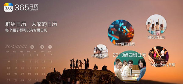2、公众日历:基于用户兴趣,日历公众平台有不同类别的日历,电影首映、演出、球赛等,用户可收藏或创建公众日历,我们有专门的平台支持。