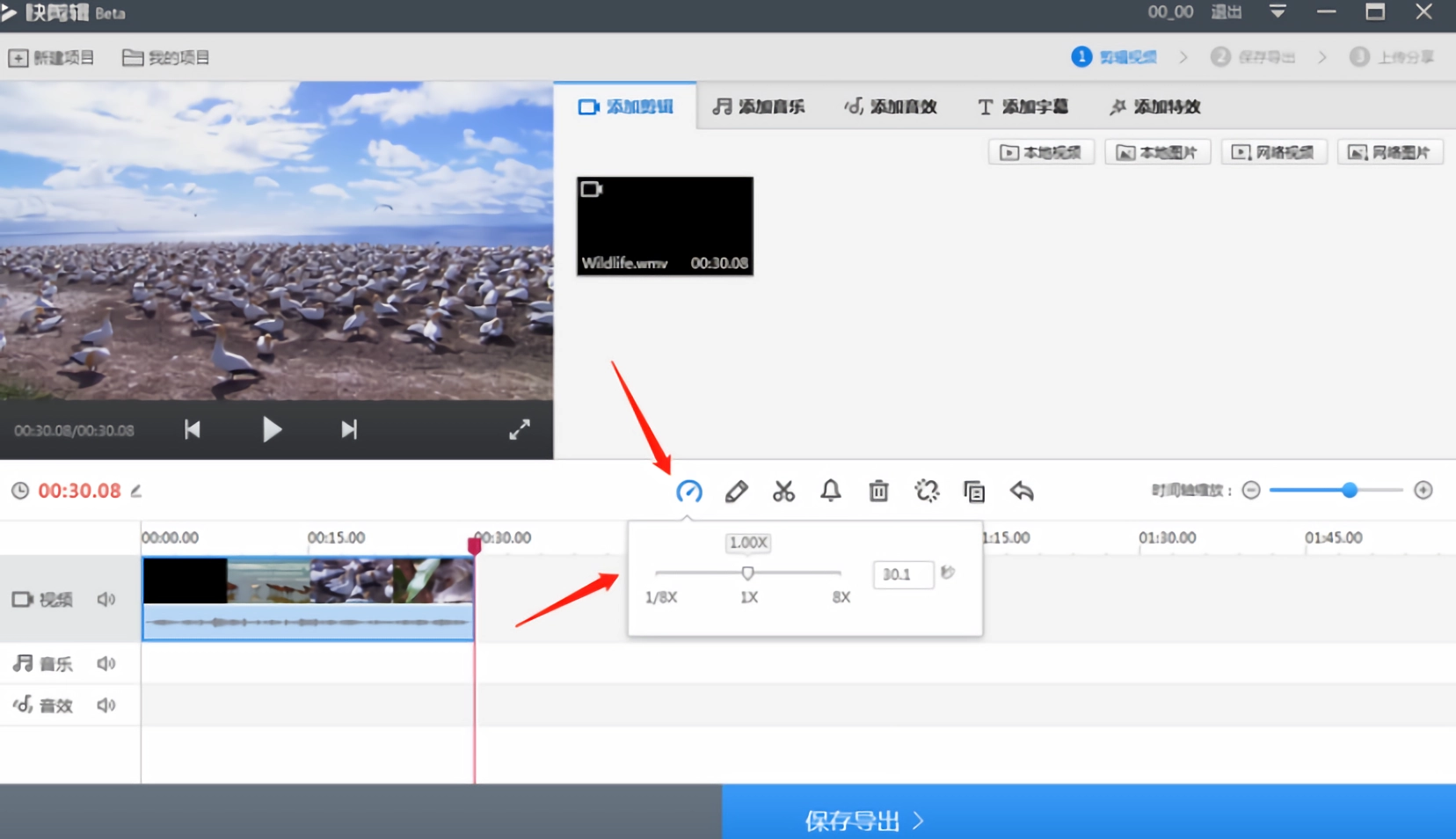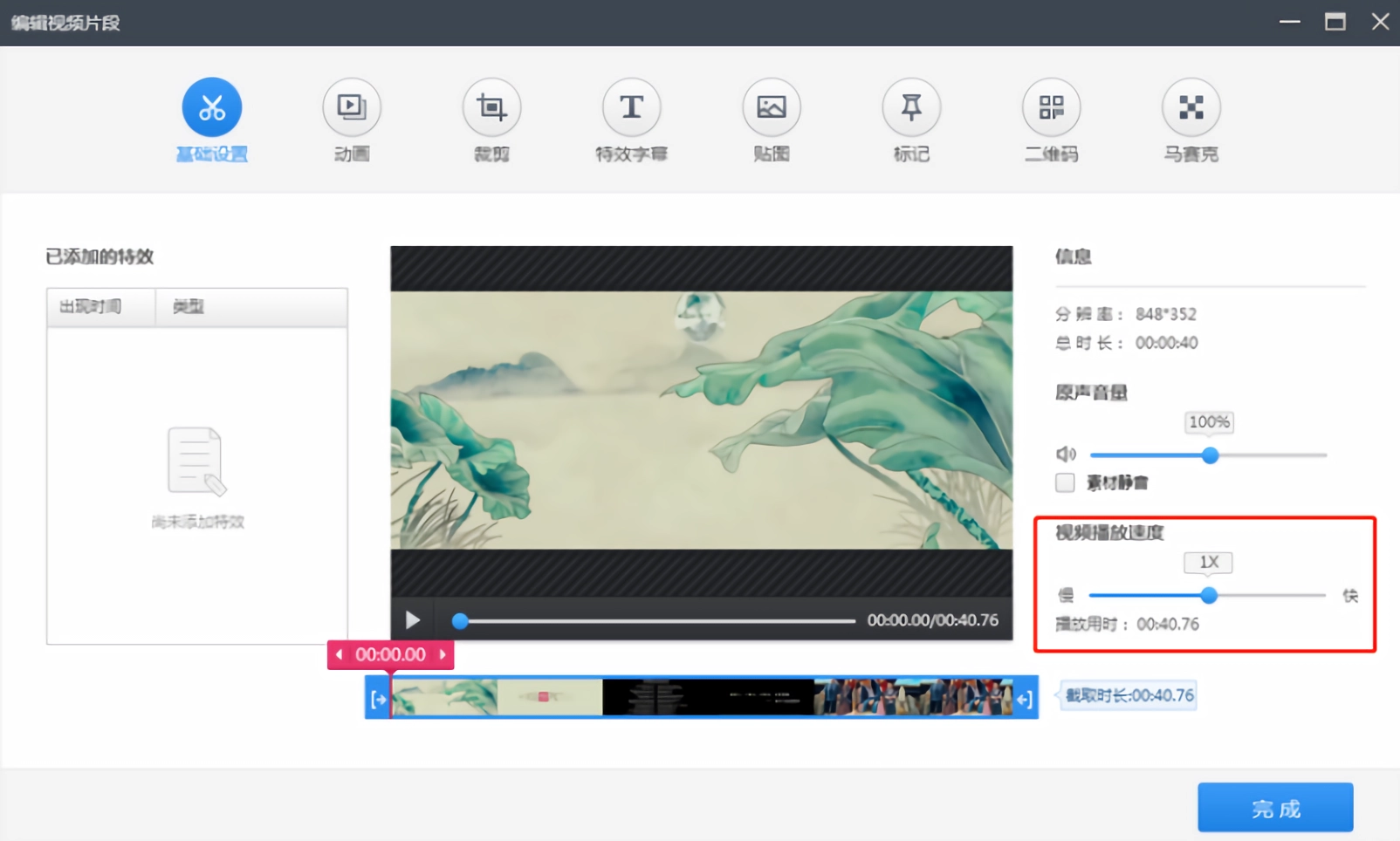 2、如何调整一段视频的速度,即加快和减慢(调速、无极调速)
