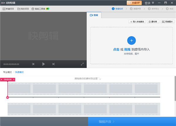 360快剪辑电脑版是360公司旗下推出的一款视频剪辑软件。360快剪辑电脑版提供两种模式,分别是专业模式、快速模式,专业模式支持添加多个音频,适用于精细剪辑,像短视频剪辑等等,而快速模式则是向导式操作方便快速完成任务,主是通过快速制作视频。