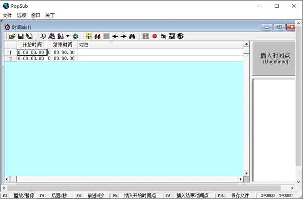 2、在POPSUB里新建时间轴。在"对白"处按住↓键建立行。行数一定要高于翻译文本的行数。