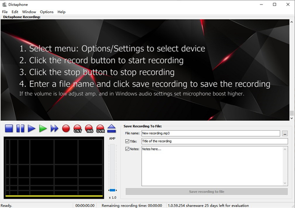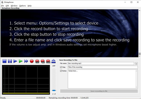 Dictaphone的安装时间并不长,并且没有复杂的设置,您在实际使用它之前就需要完成该设置,还具有一个非常直观的图形界面,并且具有许多不错的功能和工具