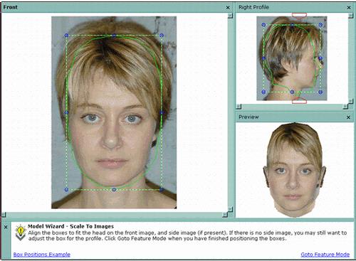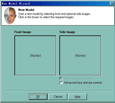 (3) 用同样的方法选取侧视图。如没有侧视图也可以不选。如使用的是左视图,请将Side Image框下的Side image is facing left 复选框选中。如果你要对脸和耳朵进行精确控制,请将Side Image框下的Advanced face and ear controls 复选框选中。选好后,点击"OK"按钮,进入操作界面。