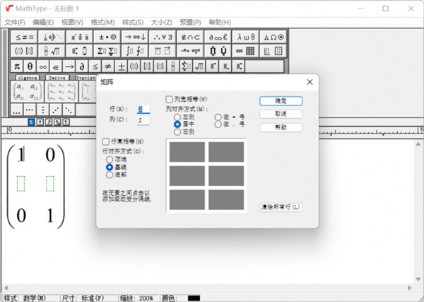 mathtype矩阵怎么加行