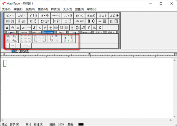 1、打开软件进入公式编辑主界面,随后在主页面中选择Matrix选项,可以进入到矩阵的工具栏界面。