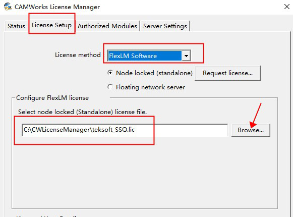8、管理员身份运行CWLicenseManager,在选项卡上的许可证设置>选择许可方式> FlexLM软件>选择节点锁定(独立)许可证文件>浏览。