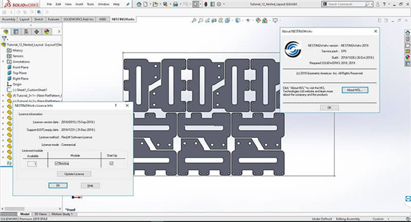 Geometric NestingWorks 2024,简称NestingWorks。这是一款自动套料软件。其用于嵌套Solidworks零部件或装配体的布局,可以与Solidworks无缝集成,允许三维钣金零部件平板特征和装配体模型的套料。除此之外,这款软件采用了NestLib技术,这是工业界一种最快和最具特色的真实形状套料库,该插件可用于金属、木材和符合材料高效的排版布局。并且软件使用极其简单,并提供行业领先的功能,不仅可以优化设计,还可以在纸张上布置零件时优化材料使用。