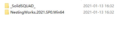 1、在本站下载解压,得到SolidSQUAD补丁文件和nestingworks 2021原程序。