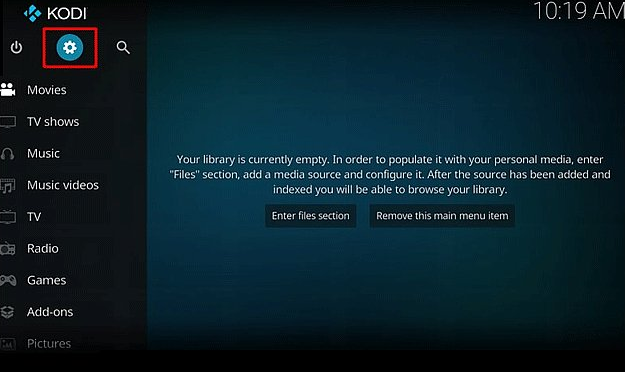 1、打开KODI,选中左上角的齿轮打开设置界面