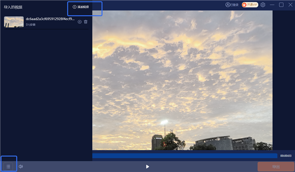 2、点击右下角三横线图标,点击添加视频。