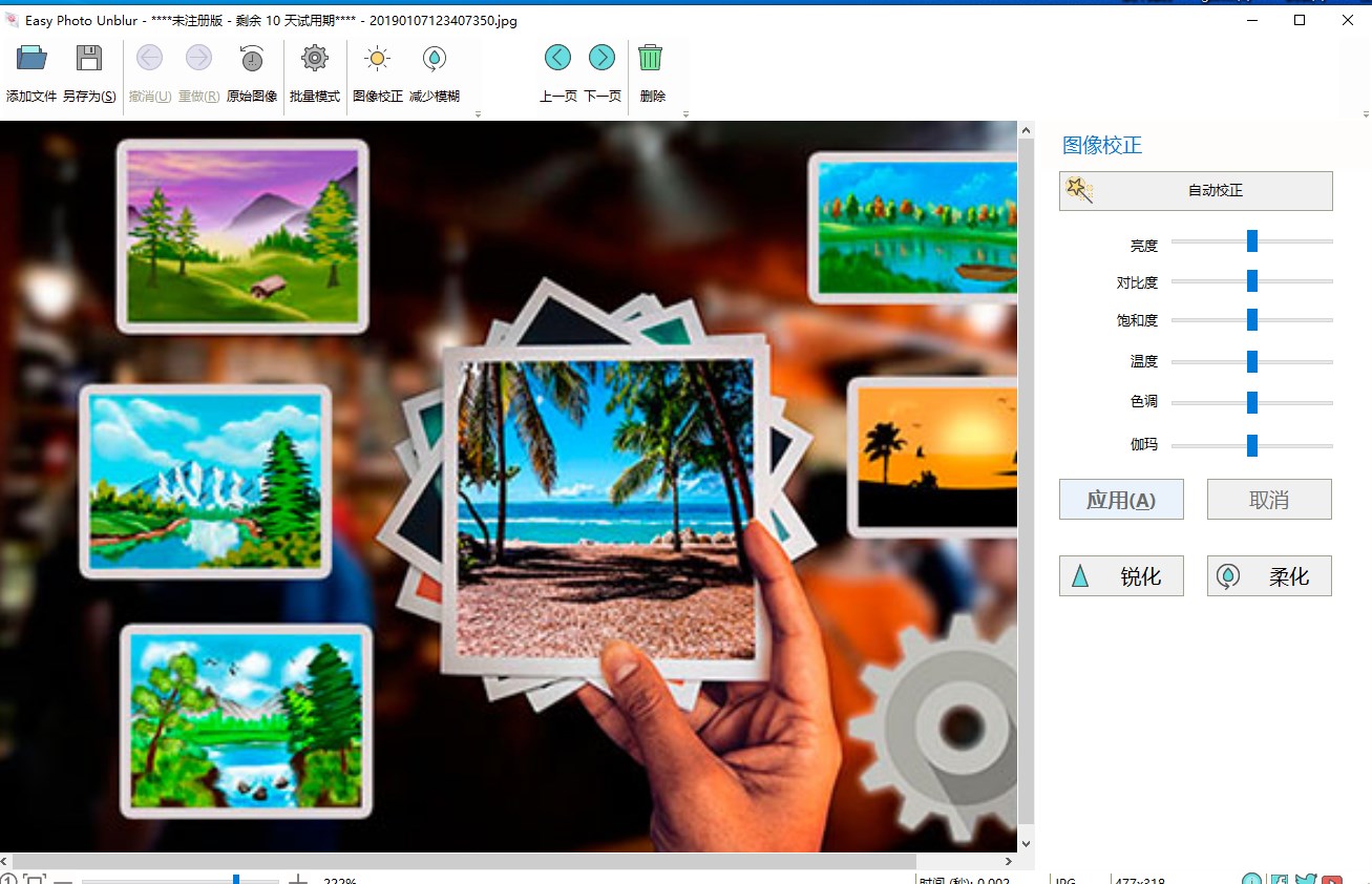 Easy Photo Unblur应用与很多其他工具不同的抖动降低技术。不是一味地在你的图片上面应用非锐化滤镜,该工具应用智能技术检测抖动模糊的图案并应用魔法修复特定图案。