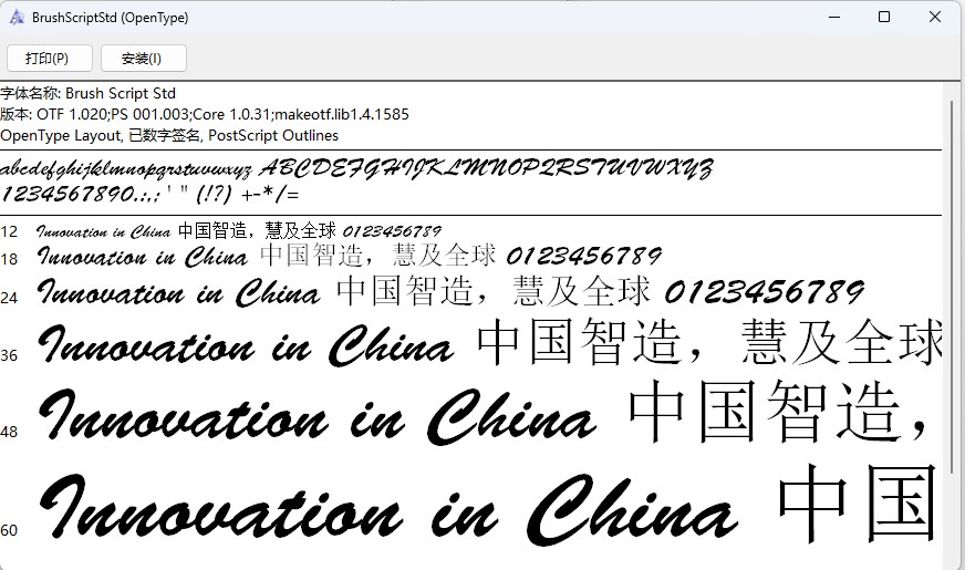 波浪效果设计字体是很多在网上下载的字体,brushscriptstd字体只适合英文。字体格式一般分为ttf,ttc和otf,该字体格式为otf。otf格式的字体是由微软和adobe共同制定一种新的字体格式,与一般字体格式有一点不同。TTF扩展名的T图标的表示TrueType字体,采用的是TrueType 曲线,不支持OpenType特性。otf扩展名的O图标的表示OpenType-PostScript 字体,采用的是PostScript曲线,支OpenType高级特性。