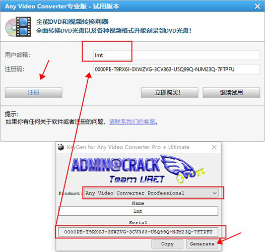 8、将用户名和注册码对应复制到软件中,点击注册即可安装;