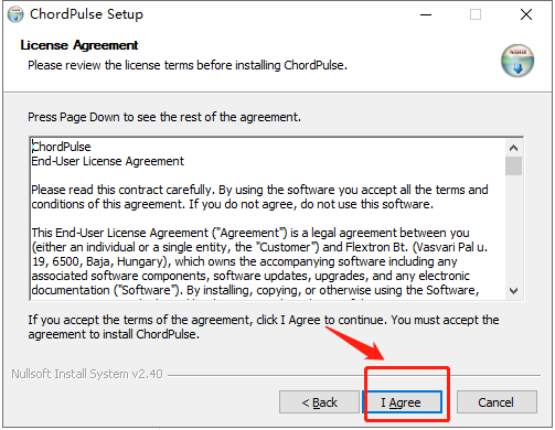 2、双击运行"chordpulse_2p6_setup.exe"程序,点击I agree同意安装协议;