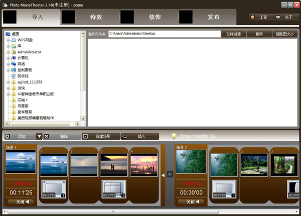 加入特殊的转换的电影和动画让照片更富个性化。软件提供了内置的模版如婚礼,小孩,电影动画,圣诞节,可以强烈增加照片之间的视觉冲击。