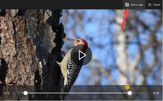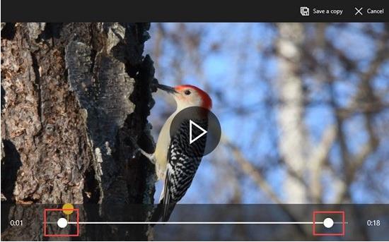4、开始修剪视频。当视频的修剪部分准备好后,单击顶部的“保存副本”或“另存为”按钮。根据文件大小、质量和分辨率,可能需要一些时间来为您创建修剪过的视频的副本。