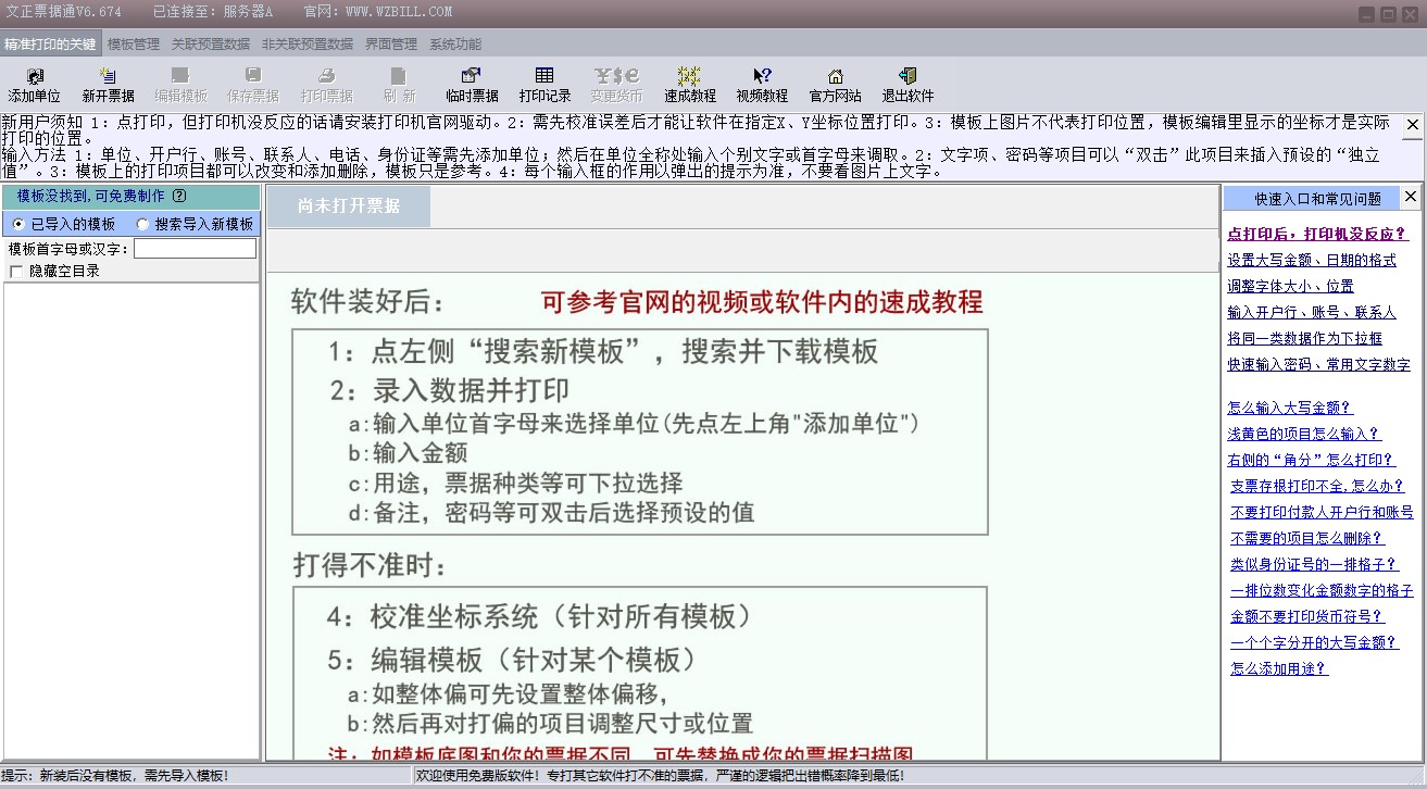 ②如果出现这种情况是打印机的问题,请关闭打印机,过一会重开打印机,多打两次就好了,③不要在模板编辑里修改格式,以免打印机正常后不知道怎么再把改过的模板改回来