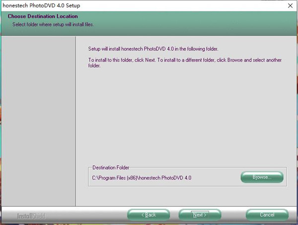 安装向导默认设置的软件默认安装路径为C:\Program Files (x86)\honestech PhotoDVD 4.0