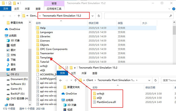 7、安装完成后,将“_SolidSQUAD_”目录下的Client补丁文件夹“Tecnomatix Plant Simulation”复制到安装目录下覆盖源文件;