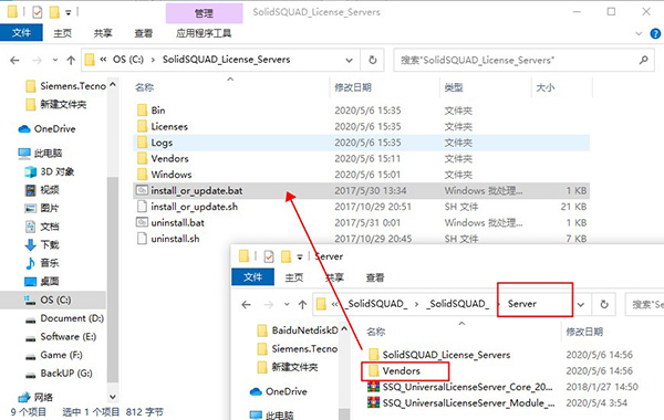2、打开_SolidSQUAD_》Vendors目录,将Vendors复制到SolidSQUAD_License_Servers目录下;