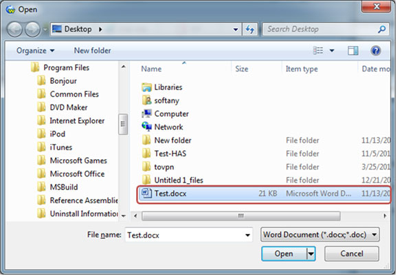 6、选择您准备的Word文档,然后单击“ 打开” 按钮。