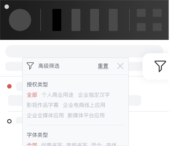 字体类型、授权范围等多个筛选标签帮您快速查找。