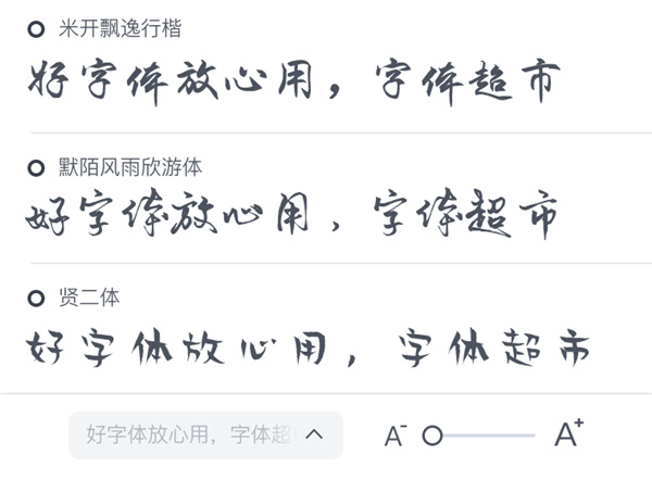 3、内置多种草书、楷书的字体,你还能够搜索到一些趣味性的字体。