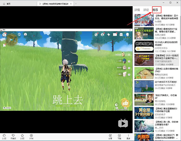 6、还可以从评论页切换到推荐页,观看相关视频推荐