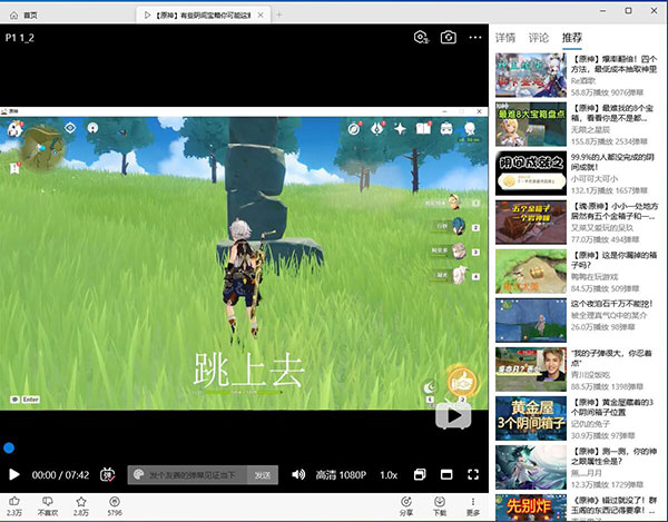 3、点击任意一个视频封面即可播放视频,可以设置和发送弹幕,调整清晰度、播放速率,开启全屏等,视频左下方有三连按钮,右下方有下载按钮