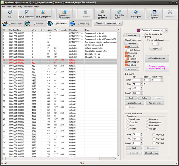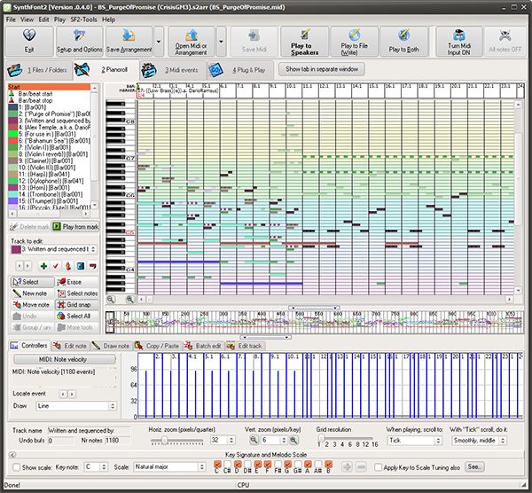 1、将感兴趣的文件加载到SynthFont中后,就可以开始编辑其便笺,同时请记住,您只能处理活动音轨中的音符-但是,您只需双击便笺以使其音轨处于活动状态即可。