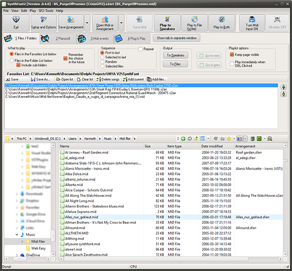 1、文件和文件夹-在此页面上,您可以选择创建播放列表,也可以使用文件资源管理器查找MIDI文件或SoundFonts。除了正常的播放列表,您还可以选择在Explorer文件夹中播放或选择MIDI文件。