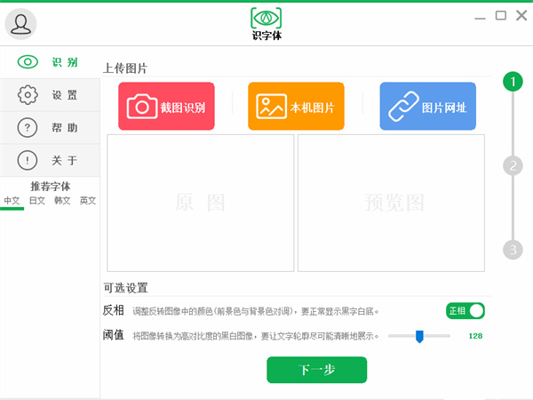 识字体电脑版是一款时下非常热的字体识别工具,该工具可以快速自动的识别图片中的字体字号,支持识别网页中的字体,有了它以后就在也不用怕不知道某个字是什么字体了,对了,这款识字体软件还支持日文、韩文和英文的识别哦,识字体Windows版(英文名:LikeFontforWindows)是字客网独立研发的全球首款图片识别在线字体和本机字体、预览字体、下载字体的Windows应用程序,是设计师必备装机软件。识字体Windows版采用独特的图像识别算法和相似度算法,领先的图像处理技术,识别精准率达到全球领先水平,支持基于Unicode8.0.0规范的拉丁文、中文、日文、韩文、阿拉伯文、西里尔文、希伯来文、蒙古文、藏文、苗文、彝文、傈僳文、傣文等全球所有文字。一款小巧实用的识字工具。需要的朋友赶快下载试试吧。